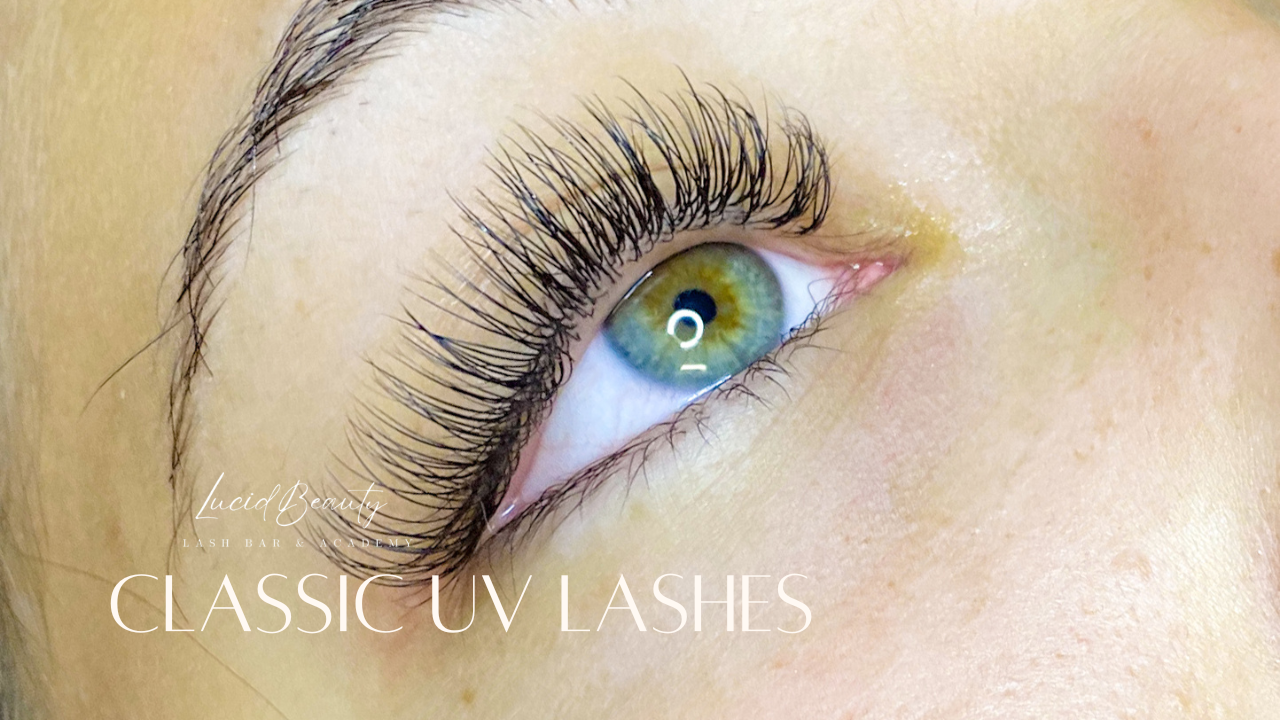A clean, soft, natural lash enhancement using single UV-cured extensions for a subtle, everyday look. Perfect for clients who want light definition without added volume.